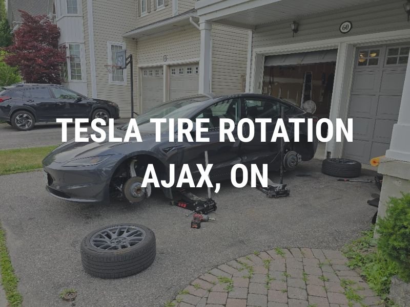 Tesla tire rotation in Ajax, Ontario (mobile service) - $75 + hst. Add precision balancing for only $40. EV certified tire technicians. Call 647-819-0490 today!